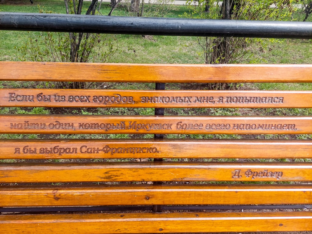 Город недавно праздновал свой юбилей, 350 лет. По этому поводу в нём появились миленькие скамеечки с цитатами каких-то людей разной степени упоротости. Сан-Франциско, ага…