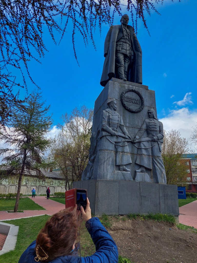 Ого! А это что за памятник?! Кому? Что за герой величаво стоит на постаменте?
