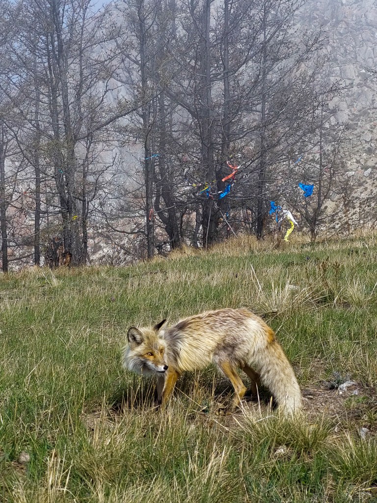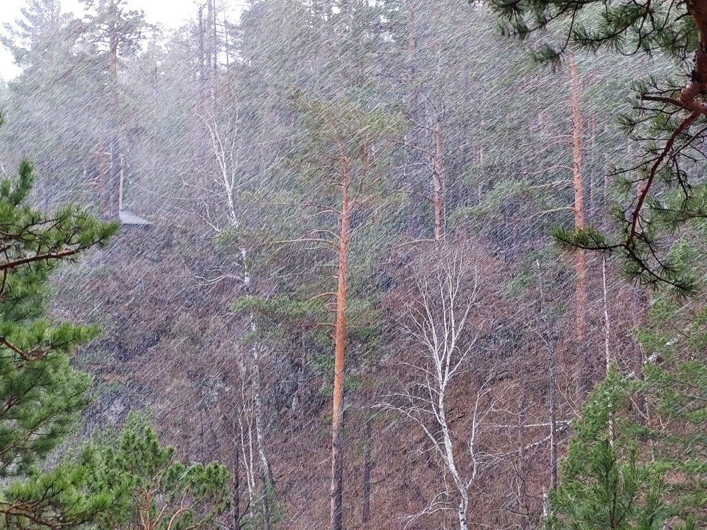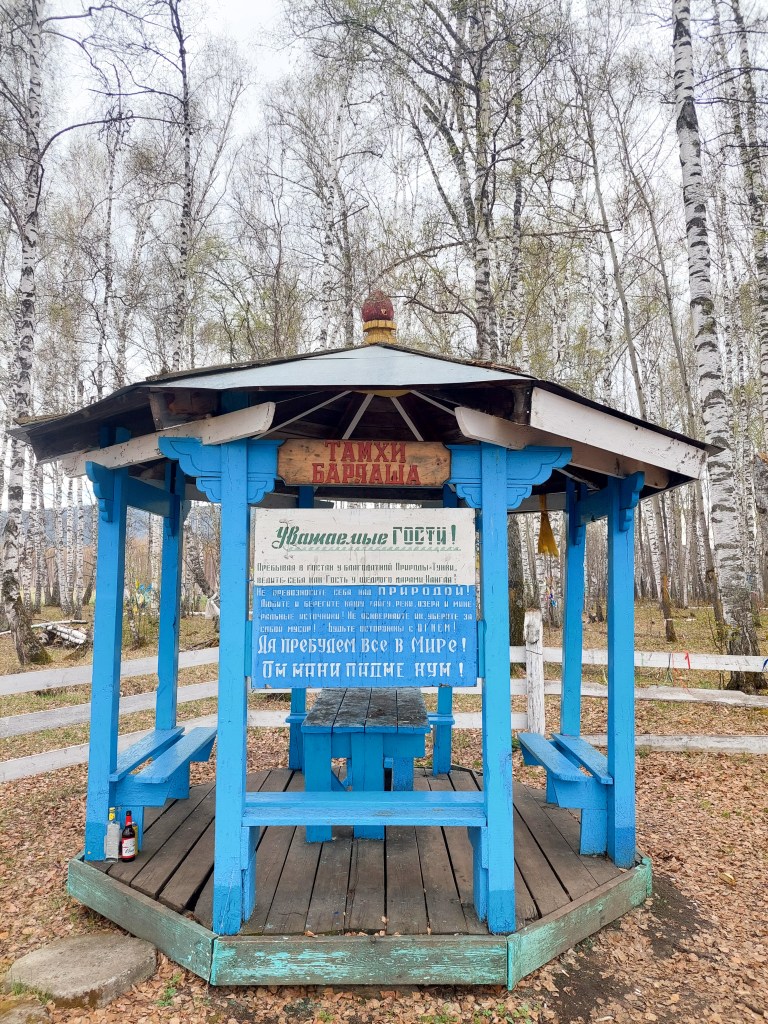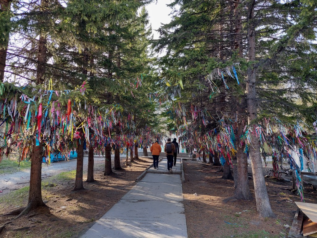 Да, по пути мы встретили какую-то турбазу, но она была абсолютно вымершей и пустой. Оживает ли это место в сезон — неизвестно. А ленточки на шаманском столбе могут висеть годами…