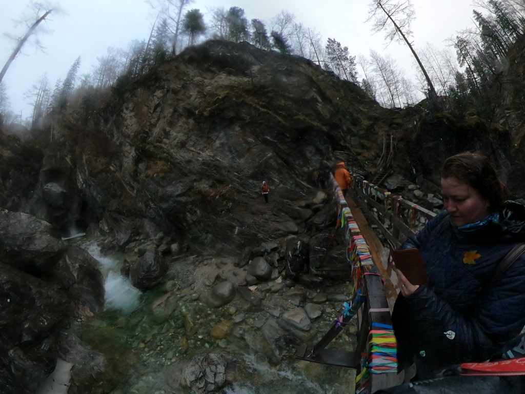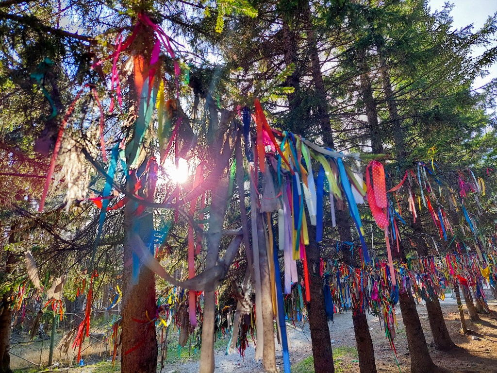 Ну-ка, а где тут собственно лечебные воды-то, которыми нас сюда манили? Курорт тут или не курорт? К ним ведёт тропинка, обильно обвязанная ленточками. И эти ленточки вы будете видеть на множестве фотографий. Что это? Ну, что-то в виде абстрактного жертвоприношения, которыми аборигены по языческой «задабривают» духов, живущих по их мнению, в «местах силы», прося взамен покровительство, хорошее расположение к себе и своей семье, а зачастую и просто на исполнение каких-то сугубо бытовых желаний.