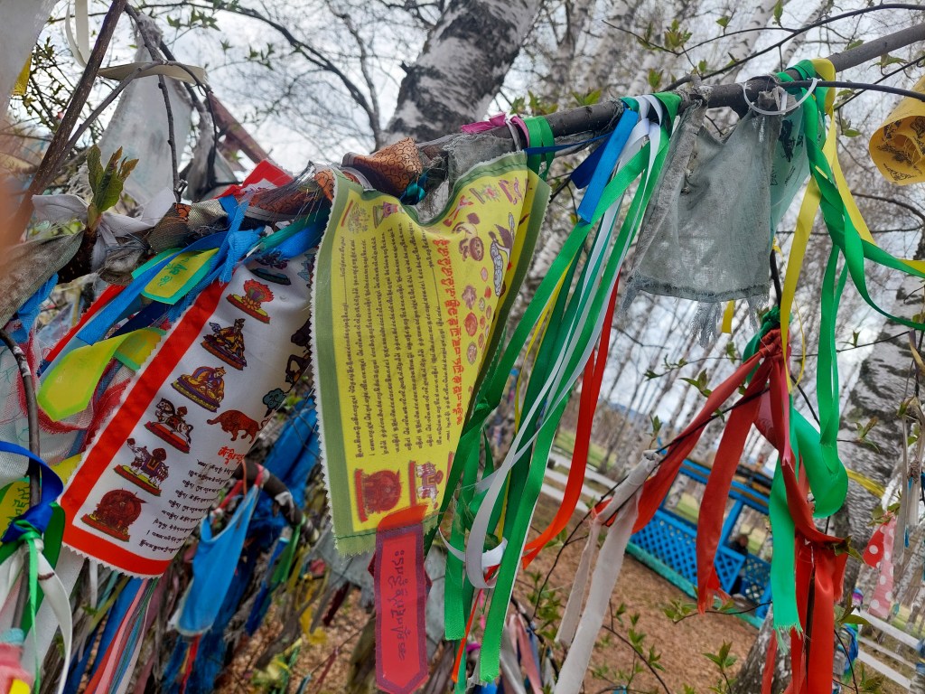 Именуются они тут по-разному: залаа, зурам, сэмэлгэ — как правильно, я и не знаю. Интересно, что это не только шаманский обряд, в буддизме тоже повязывают особые длинные шёлковые шарфы в особых местах и зовут их хадак. Но думаю, языческая традиция постарше будет.