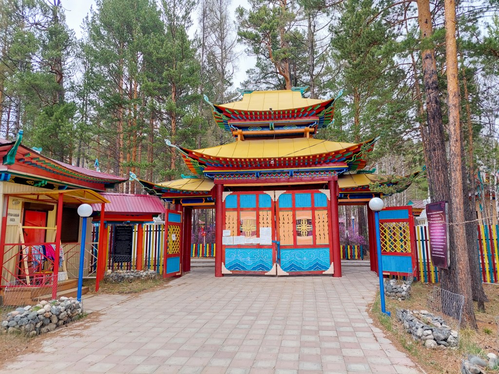 Чуть поподробнее о буддизме у бурятов. Заглянули в большой местный дацан, носящий (внезапно) имя одного из шаманских святых — Шарган-Ноёна, волшебного богатыря, сродни Илье Муромцу, наверное. Здесь его дух был хозяином большого песчаного холма. В начале XX века ламы из Тибета, придя на эти земли со своим учением, не стали ломать верования аборигенов, а лишь чуток подправили, удачно вписав в свою религиозную канву. Дух великого богатыря Шарган-Ноёна переименовался в святого Бурхан-Баабая, защитника земель и покровителя воинов. Заодно красивых беседочек понастроили. Всяко польза! Дацан намного красивее того, что мы видели в Аршане.