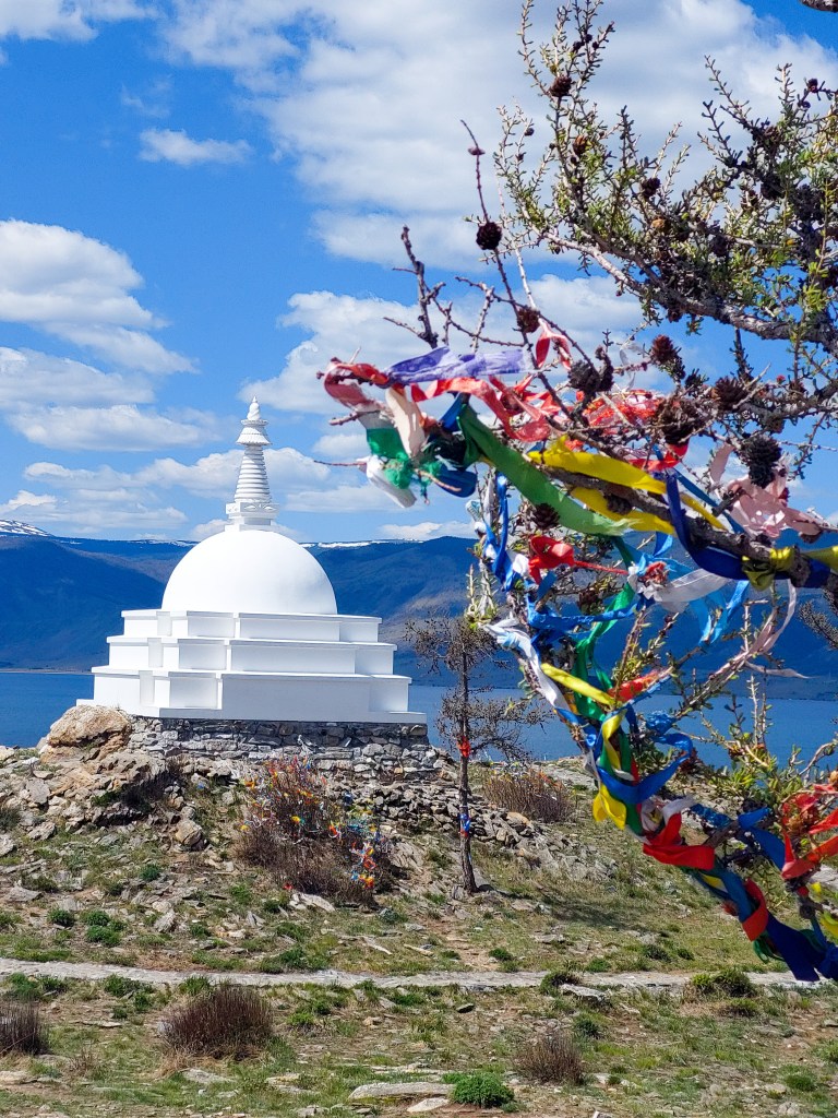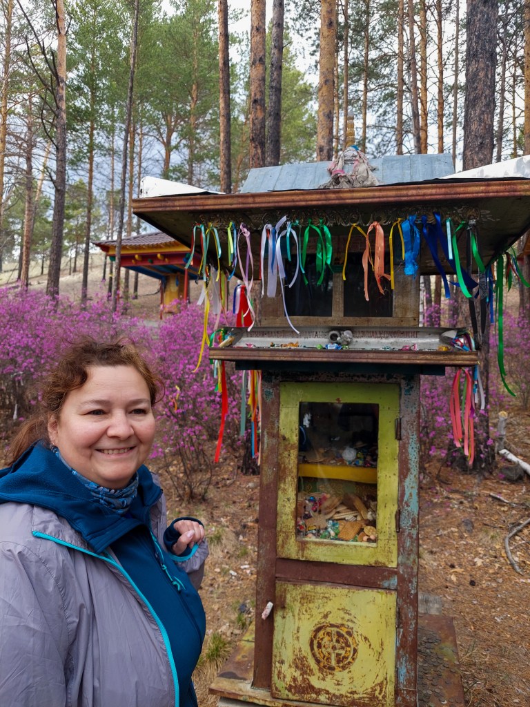 А теперь хочу поговорить за религиозный аспект у бурятов. Тут просто фантастическая каша, скажу я вам. Любые азиаты достаточно прагматично относятся к религии (раз поп пить не разрешает, пойду у ламы спрошу), и буряты не исключение. Будучи (хотя бы де-юре) частью России, они практически все числятся крещёными православными. Но при этом буддистских храмов на этих землях намного больше, и они вежливо скажем, не простаивают. Но при этом за советом, за обрядом, за лечением обязательно бурят зайдёт ещё и к своему шаману: языческий, дремучий обряд поклонения предкам и духам это обязательная часть местного быта.Но нам, честно говоря, было весьма дико видеть буддийские ступы и характерный храмовый силуэт-дуган на фоне сермяжных берёзок и белоснежных горных вершин. Мы-то привыкли наблюдать их в обрамлении пальм да джунглей, в странах Юго-Восточной Азии