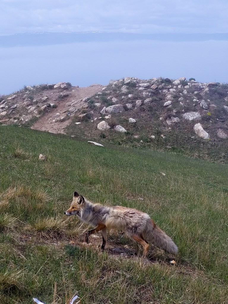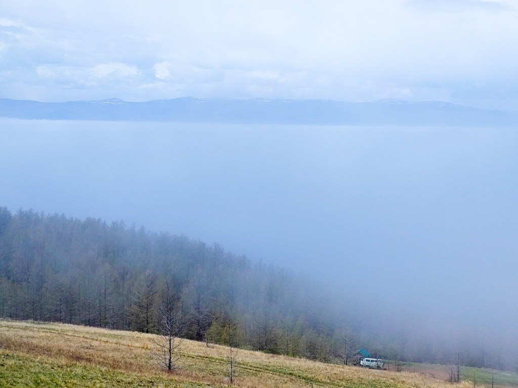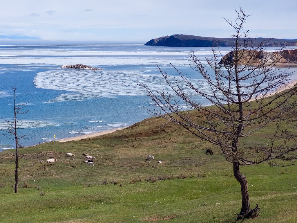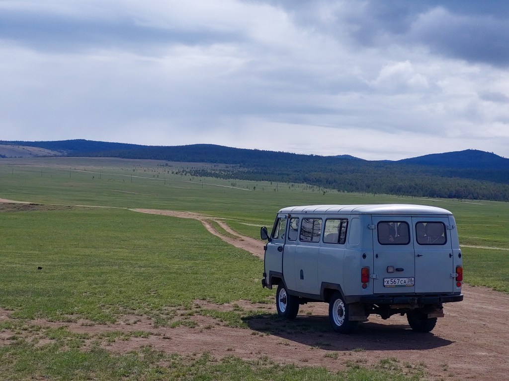 В программу нашего тура на Ольхоне у нас была включена лишь одна обзорная экскурсия, по северу острова, на мыс Хобой, а два дня были свободными — делай что хочешь. На второй день мы решили заказать какую-нибудь экскурсию себе самостоятельно, и столкнулись с проблемой. Внесезонье! Никакие туристические ларёчки в посёлке не работают, телефоны, указанные на рекламных объявлениях просто не отвечают. Для того, чтобы что-то устроить, нужно договариваться с аборигенами, благо они к туристам привычные и спокойно реагируют, если ты подходишь прямо к водителю УАЗика на улице и спрашиваешь, не сможет ли он куда-нибудь нас свозить.