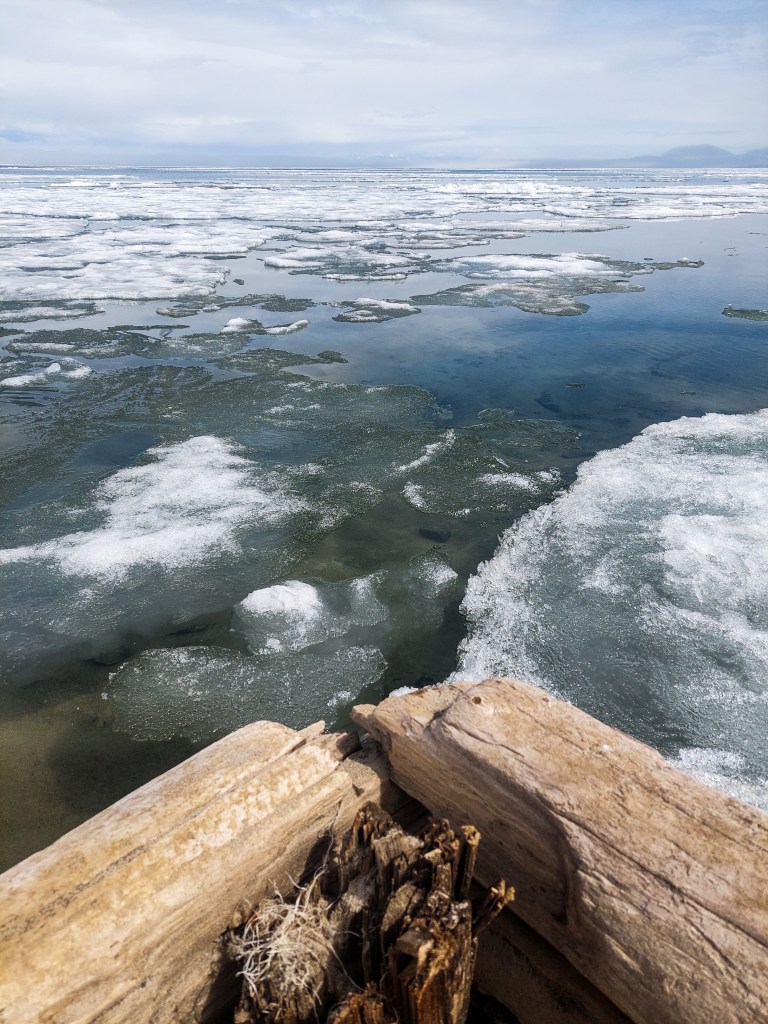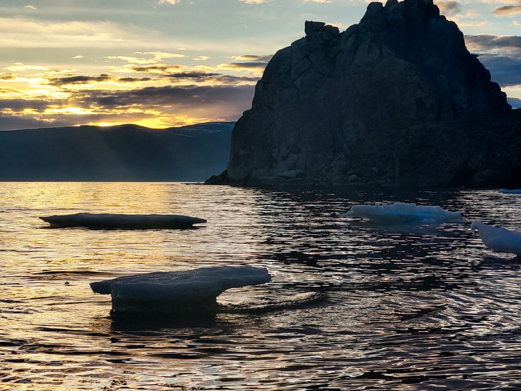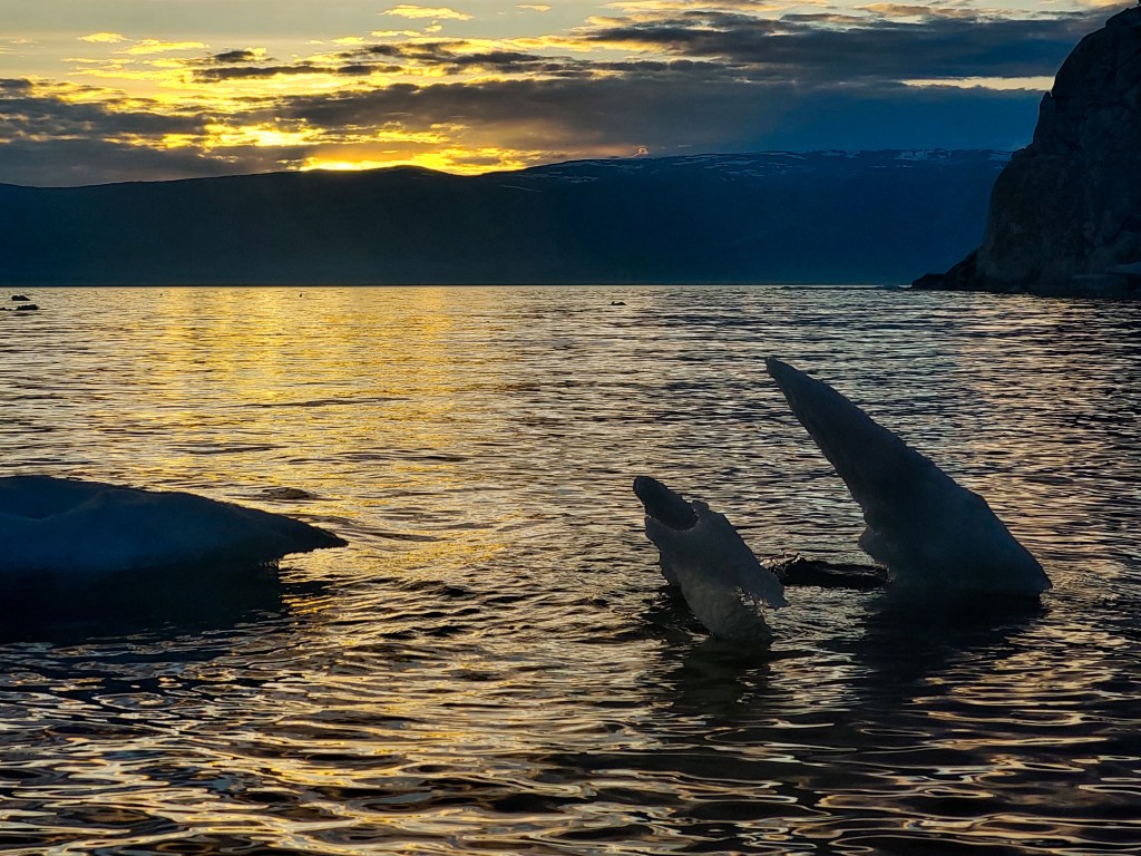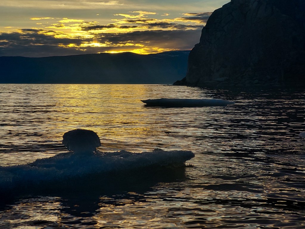 Забавный нюанс, который я уже упоминал: всю эту поездку я был с загипсованной правой рукой — неудачно упал с велосипеда прямо накануне поездки. Какая же была у меня паника, когда я понял, что не смогу держать в правой руке свой неизменный фотоаппарат, а левой — нет никакой возможности нормально нажимать на кнопку спуска! Как так, лететь на Байкал — и без привычной зеркалки с комплектом правильной оптики?! Это фиаско, братан. Но Байкал выдаёт такое, что можно снимать даже на тапок — и всё равно будет получаться замечательно. Да, всё что здесь я показываю — это обычная мобилография. Потому вот вам ещё байкальского льда на закате.