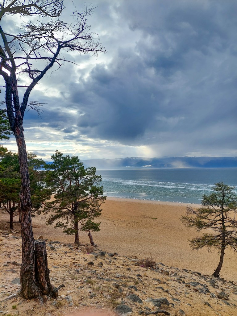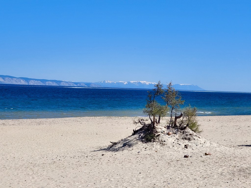 А следующий день мы решили не занимать никакими экскурсиями. Да, была возможность ещё раз сесть в УАЗик и поехать изучать юг острова — но мы решили сделать паузу, остановить бешеный темп нашего тура. Всё-таки Байкал это совершенно не место для «галопом по Европам». Сюда нужно приезжать надолго. Потому что в этих краях на самом деле можно просто сесть на берегу и полдня молча медитировать в никуда, любуясь колыханием воды. И это получился самый приятный день за всю поездку. Мы никуда не спешили, никуда не бежали, нас ничто не подгоняло, наконец-то появилась так любимая нами свобода перемещений. Сначала отправились гулять по бескрайнему многокилометровому пляжу Сарайского залива. Да, побережье Байкала на Ольхоне — это не только скалы, валуны да галька. Такие чисто балтийские пейзажи здесь тоже встречаются.