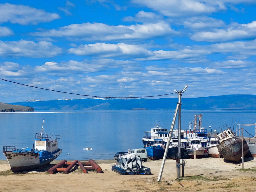 Вернулись на ту же пристань рыбзавода. Да, рыболовецкий флот Ольхона теперь, похоже, на вечном приколе. Основная промысловая рыба — известнейший байкальский омуль — практически исчезла из-за этого из рациона местных жителей и из меню окрестных ресторанов и кафе. Хотя нет, вру: туристам-то омуля копчёного подадут, втридорога. Только это будет не омуль, а пелядь: другая, менее ценная и менее вкусная рыба, но в готовом виде турист точно не отличит. Сами же местные для себя либо браконьерят потихоньку (но крайне осторожно и по чуть-чуть: штрафы конские и рыбнадзор бдит серьёзно), либо отъедаются этим рыбным деликатесом зимой: на удочку из подо льда в личных целях его всё-таки пока ещё можно надёргать.