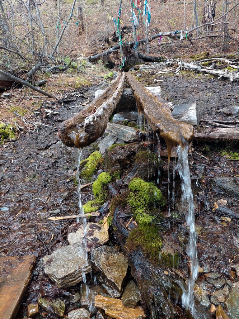 Источник разделён на две струйки, одна считается мужской, другая женской. Говорят, что что по вкусу они отличаются. Попробовал оба, но честно признаюсь особой разницы не ощутил. Да и к тому же, если она и есть — её могут добавлять собственно деревянные желоба, они не особо стерильны, как видите. Вода вкусная, но всё-таки серебряный источник в Тункинской долине мне зашёл больше… Вкусовщина, не спорю.