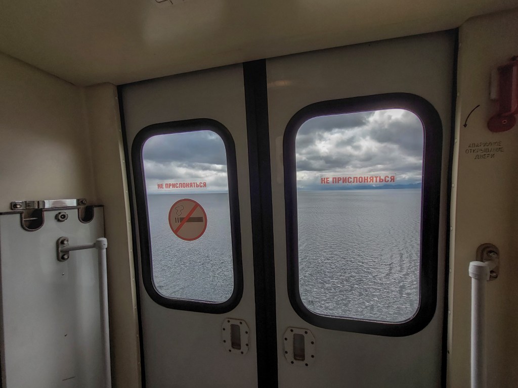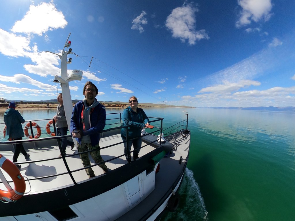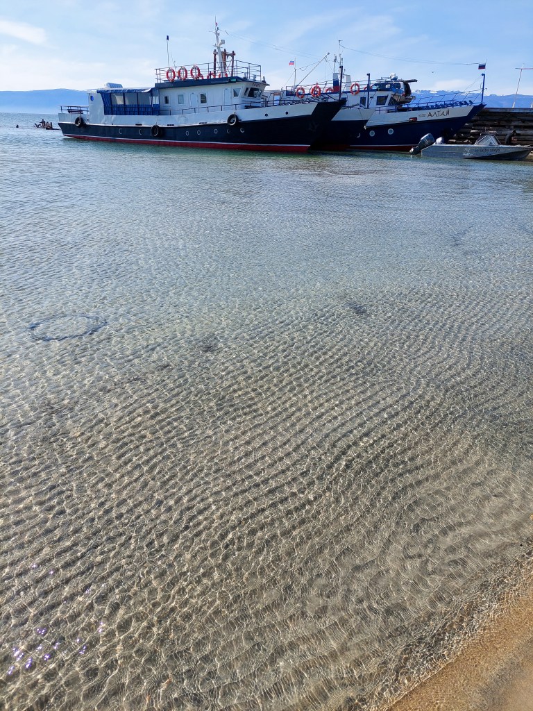 В результате после некоторых организационных перипетий нам удалось организовать заплыв на достаточно солидном кораблике — потому что до этого местные жители, ссылаясь на малочисленность группы желающих, предлагали провести экскурсию на небольшой стеклопластиковой лодочке без всяких удобств на борту. Наконец-то мы хорошо поплаваем по Байкалу!