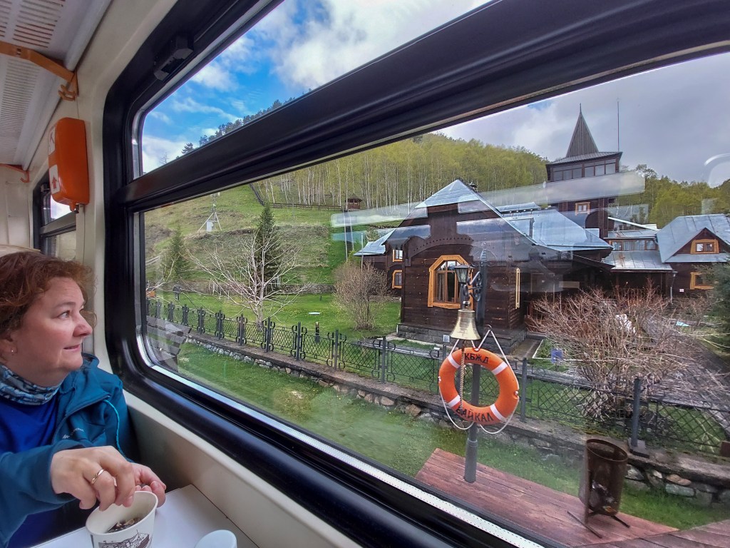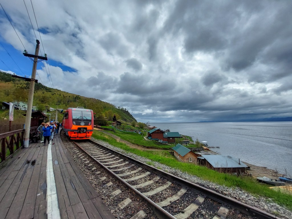 Видовое путешествие началось для нас в Слюдянке, где поезд меняет направление, переходя с (7) на (5). Это кстати последний островок цивилизации, где можно купить сникерс в дорогу пожевать, дальше места предстояли нам дикие.