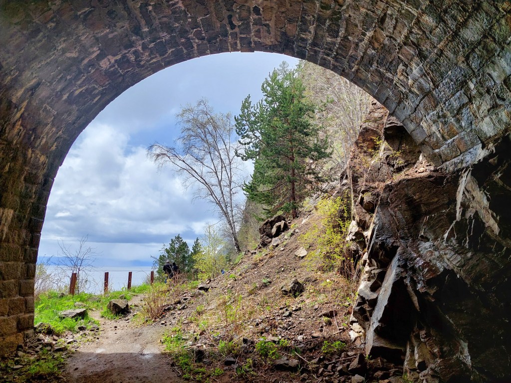 Очень интересно разглядывать инфраструктуру железнодорожную: она вся «сдвоенная»! Этот участок пути сначала был одноколейным, с узкими тоннелями и мостами. Потом, когда здесь проходил Транссиб, была построена рядом вторая ветка — продублировав все мосты и тоннели. А затем за ненадобностью и ненагруженностью участок снова стал одноколейным. Но мосты с тоннелями же остались! Их как рельсы на переплавку не свинтишь.
