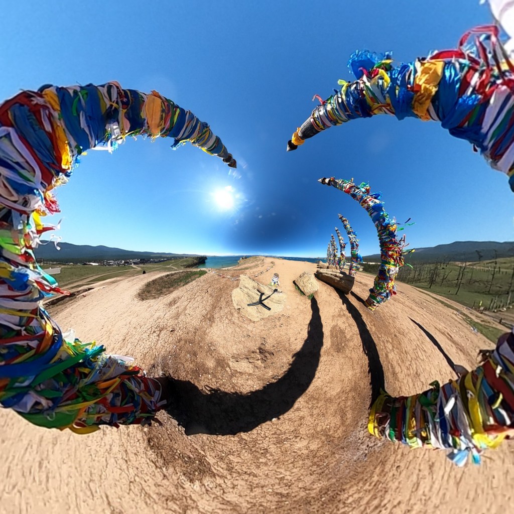 Сейчас что только про эти столбы вам гиды не наплетут! И что это преграда для злых духов, и что место для жертвоприношений, и что это специальное предупреждение — барьер для женщин: мол, ослушавшиеся дамы, прошедшие дальше будут прокляты шаманами… Но ларчик открывается намного проще: это бывшая коновязь. На святые места буряты не заезжали на лошадях, чтобы стуком копыт по камням не потревожить местных духов, а ловить коней по степи после окончания обрядов на Шаманке не хотелось. Вот столбы и прижились. Но выглядят эти постоянно шевелящиеся штуки прям ух.
