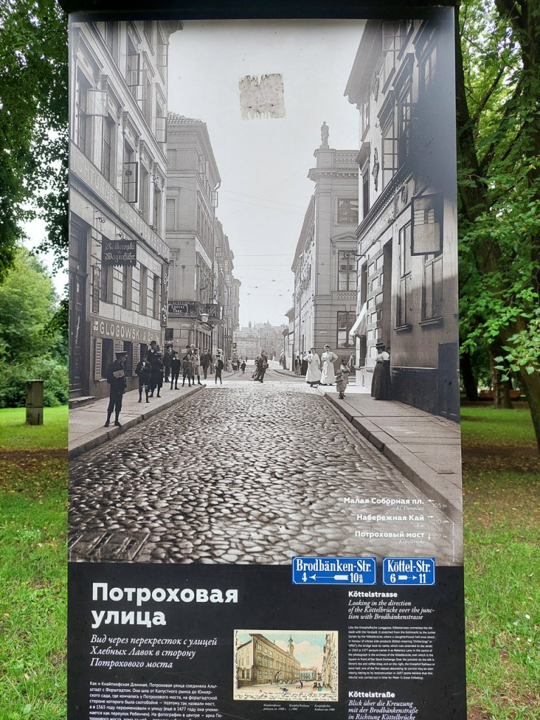 Мне нравится, что Калининград наконец-то начал показывать своё прошлое. Раньше о «немецких корнях» ну не то что бы умалчивали, но старались упоминать поменьше, не выпячивать его инородность, старательно изображая «мы всего лишь ещё один российский город». Сейчас же туристические штендеры показывают всем, как эти улицы выглядели изначально, а красивые уличные прусские указатели можно купить как сувенирный магнитик.