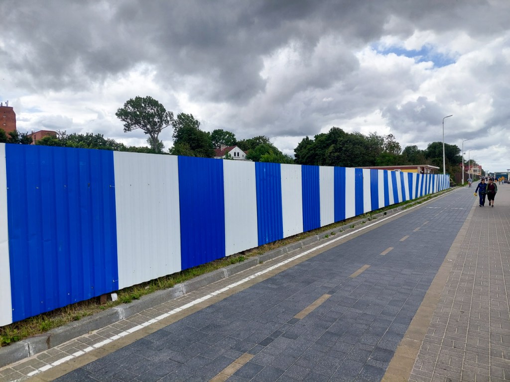 А за солнечными часами нас ждал очередной сюрприз. Светлогорск, как и Москва, выплеснулся за свои границы. Ему продлили променад! Причём похоже, что «новосветлогорский» променад длиннее «старосветлогорского» раза в три! Правда, всё время прогулки вам придётся пялиться на строительный забор со стороны берега.