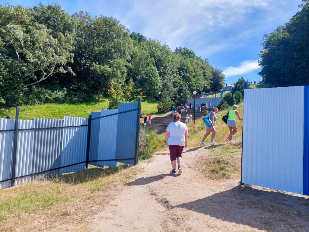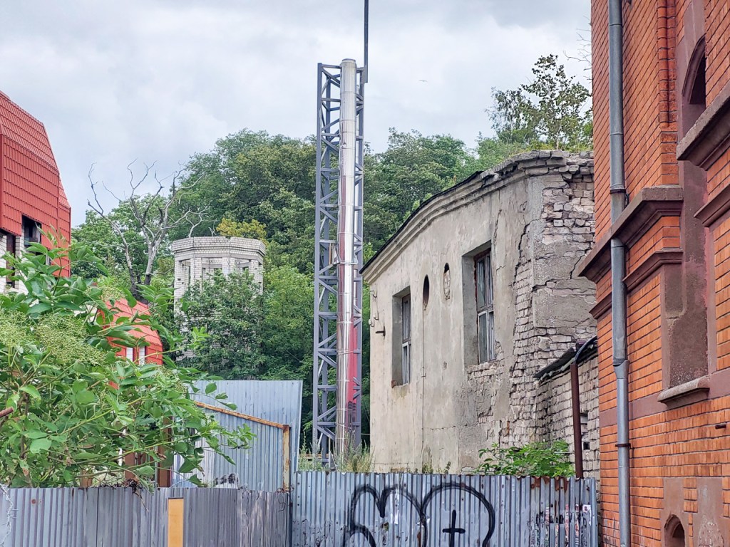 Шагаем дальше по променаду, предаваясь ностальгии. Вот здесь был старая лифтовая башня ЦВС, один из символов города. В 2016м году мы с изумлением обнаружили её снесённой, а все окрестные заборы были увешаны проектом лифта «лучше и круче», который тут будет построен. Теперь вместо них — выставка баннеров с фотографиями Светлогорска образца двухтысячных годов. Замечательно.