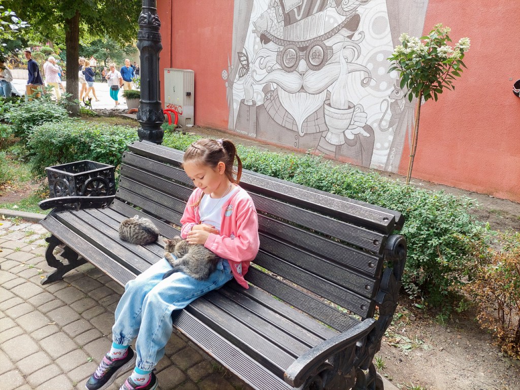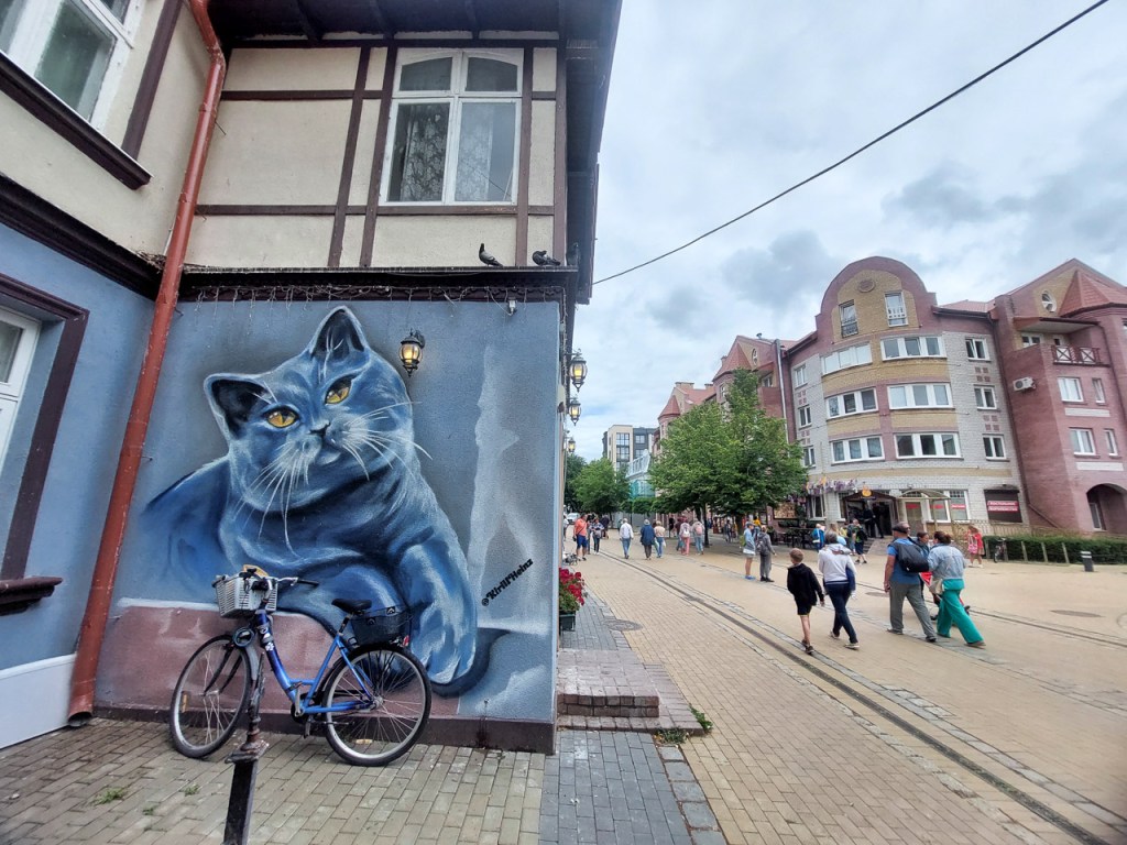 Ну а чем Зеленоградск валит наповал — так это котики. Это город котиков! Как в визуально-оформительском, так и в прямом смысле. Визуальный символ-бренд города — котик. Любой.
