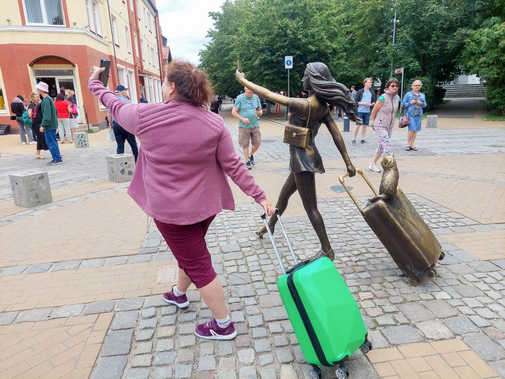 В Зеленоградск мы приехали слишком рано, арендованные апартаменты не были готовы, потому с городом мы знакомились канонически: с чемоданом 🙂