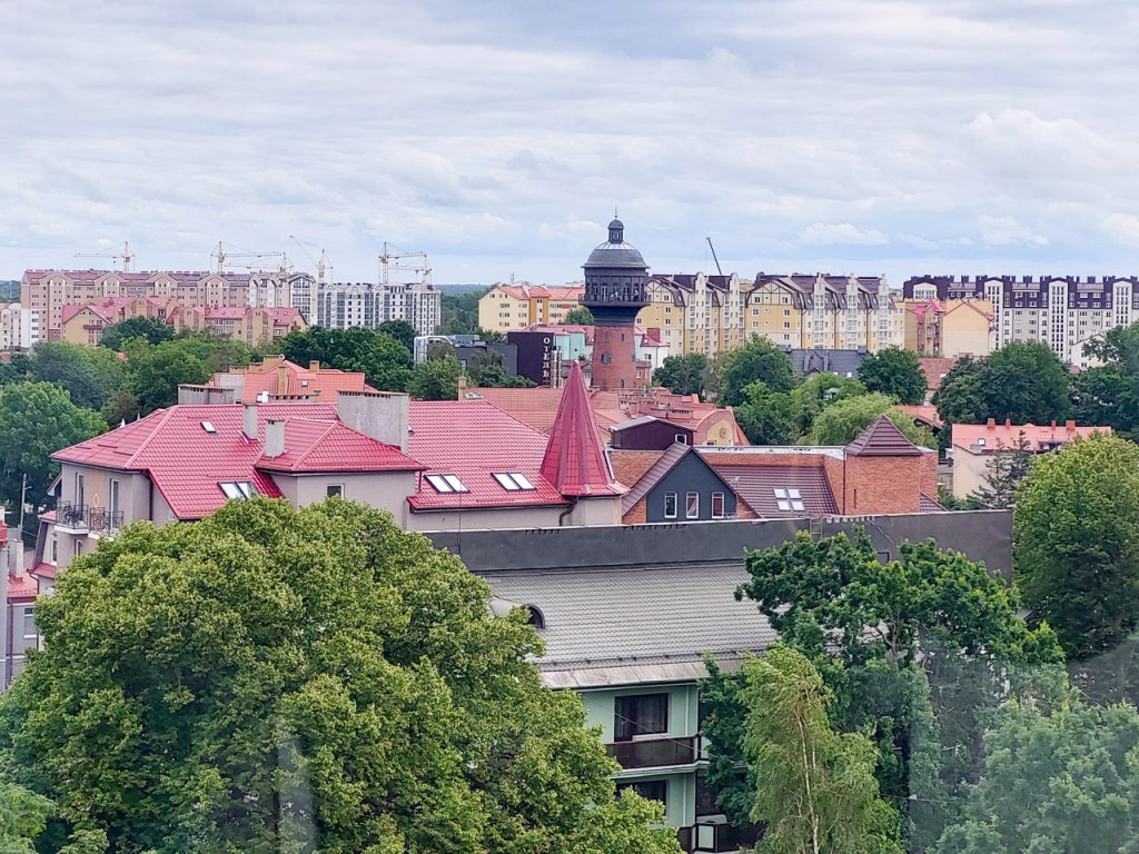 А вот кстати и наш жилой комплекс виднеется, в котором наши дорогущие апартаменты нас ждут. Ничего, пусть ещё подождут. Кстати, отмечу, что общая стилистка оформления домов в Калининградской области придерживается более-менее единого вида, нет аляповатой «лужковской эклектики», которой до сих пор грешат новостройки многих российских городов.