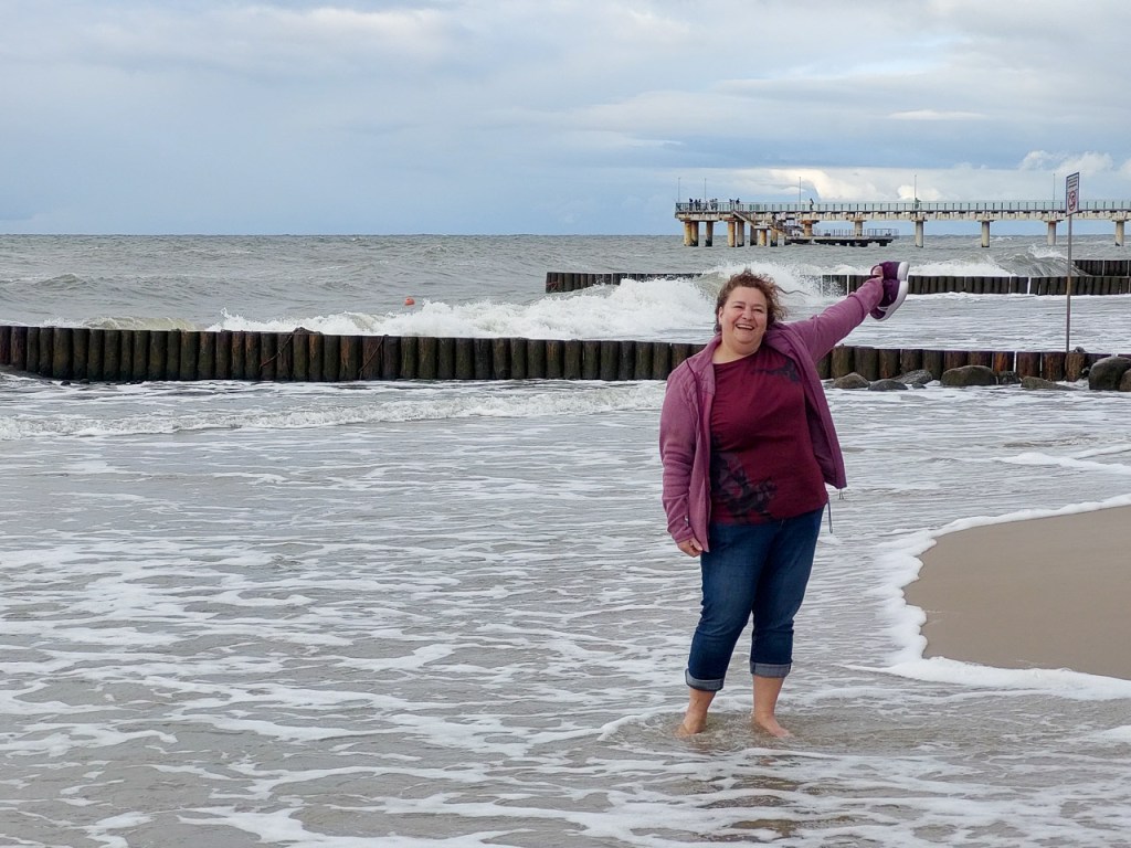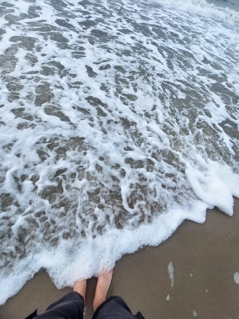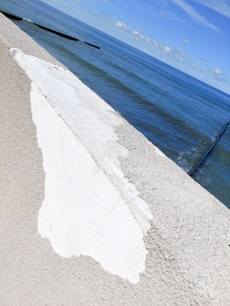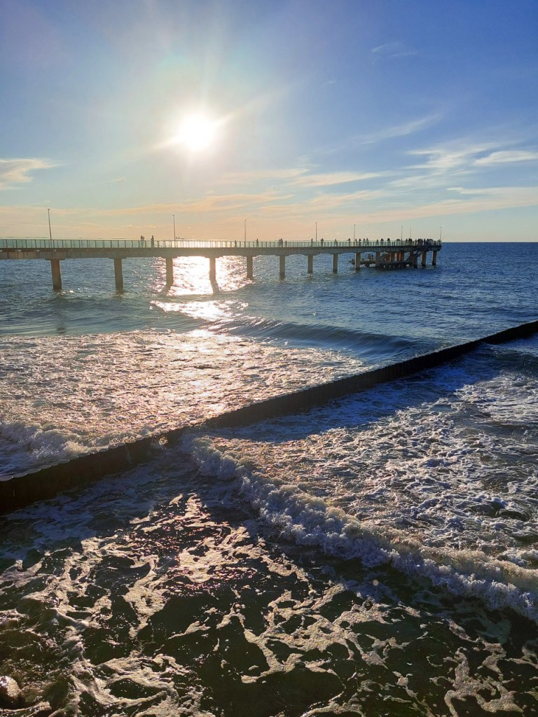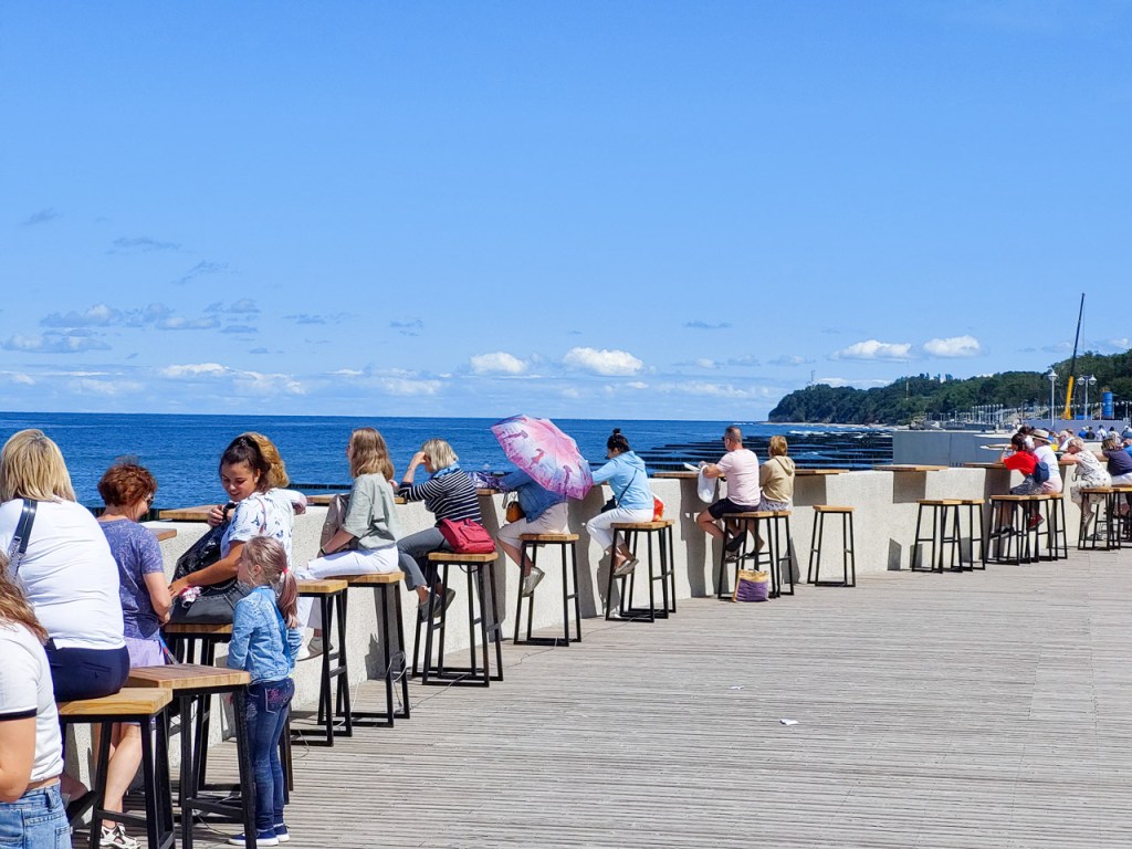 Естественно, первое куда мы бежим в приморском курортном городе — это море! Мы же сюда ехали с ледяного Баренцева, айда сравнивать с Балтикой. Ой. Похоже с купанием будет не очень. Штормит, пляжа перед променадом, о котором нам с упоением рассказывали знакомые, практические нет — высокие волны перехлёстывают его весь и бьют в фундамент.