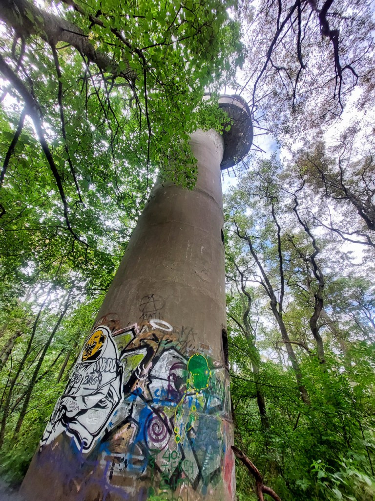 На выезде с Зеленоградска в лесу внезапно наткнулись на военный артефакт. В деревьях скрывалась целая башня! Неожиданная находка.