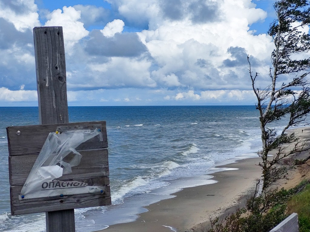 Несколько раз порывались выскочить на морскую часть косы, встать на пляже, но на нетуристических местах спуски, которые за зиму разбивает штормами, восстанавливают редко.