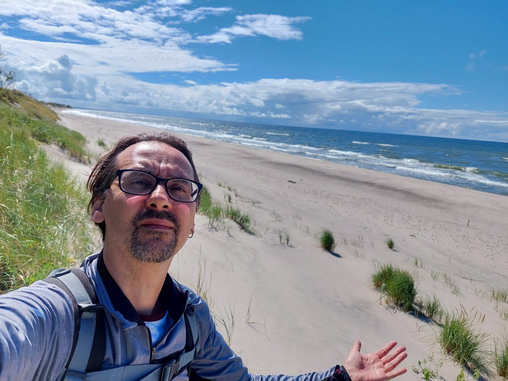 Ну, точнее, до начала национального природного заповедника «Куршская коса». На земле вы его границу не увидите, но примерно от мачты на бережку он и начинается.