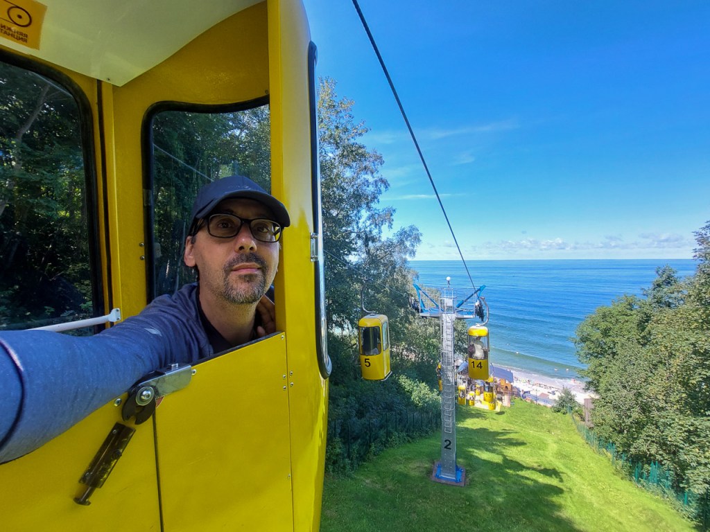 А на следующий день мы решили посетить Светлогорск — город нашей молодости. Сколько там отпусков проведено — и не пересчитать. Доходило до того, что с нами начинали здороваться все местные продавцы, настолько мы там примелькались. Потом была пауза в десятилетие как минимум, потом мы заглянули сюда буквально на минутку в рамках нашего тура по балтийским курортам в 2016 году, отметили факт что Светлогорск застрял в «старом-добром времени» как муха в янтаре, да и снова укатили колесить по миру. Ну теперь геополитические карты вновь легли так, что Светлогорск снова привлёк наше внимание в качестве места для отдыха. Регресс, всё возвращается на круги своя. И вот мы вновь в тесной кабинке фуникулёра, поскрипывая и покачиваясь, спускаемся на променад. Чем новым ты порадуешь нас, Светлогорск? Или огорчишь? Или ты по-прежнему во вневременьи?