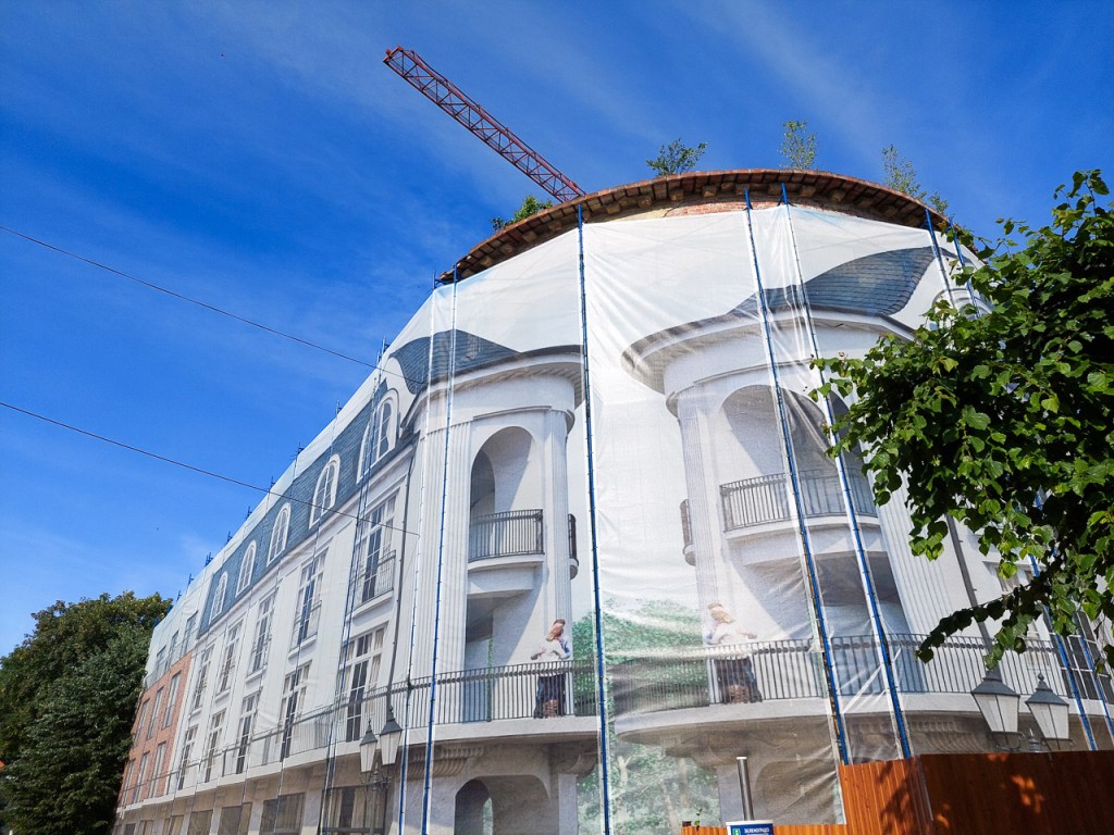 Ну хоть баннером стыдобищу прикройте, мол «ведутся реконструкции, здание будет выглядеть вот так» — как на «Доме звёздного неба» неподалёку.