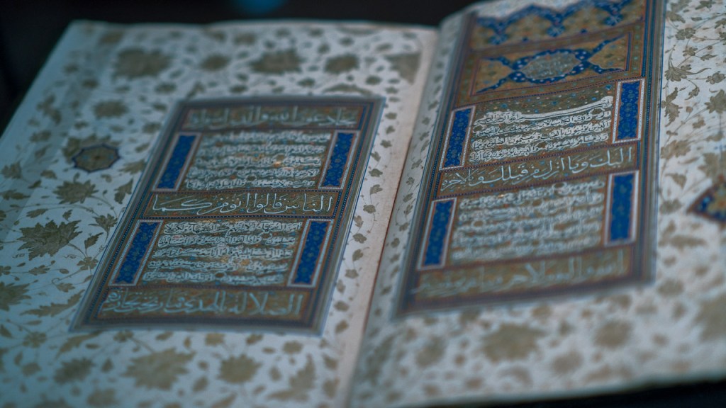 Часть экспозиции, посвящённая религии и Корану. Вот тут атмосфернее: в углу сидит мулла и завывает на разные лады в микрофон. Но его, оказывается, нельзя фотографировать.