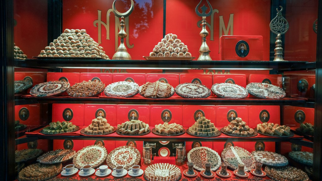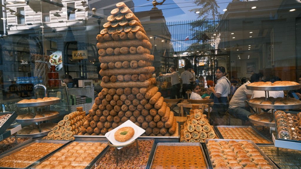 Справедливости ради отмечу: раньше в Стамбуле на улице можно было питаться за считанные копейки, любому студенту было доступно. Сейчас же найти перекус дешевле 100 лир совершенно нереально. За последние годы страна очень подорожала, увы.Но мимо свежайших турецких сладостей пройти совершенно невозможно.Да, у нас их тоже можно купить. Подсохшими и втридорога. Местные мидии. С лимочиком. Отловлены днём, съедаются за вечер.Истикляль в обычном состоянии. Оцените через что приходится пробираться несчастному трамвайчику.