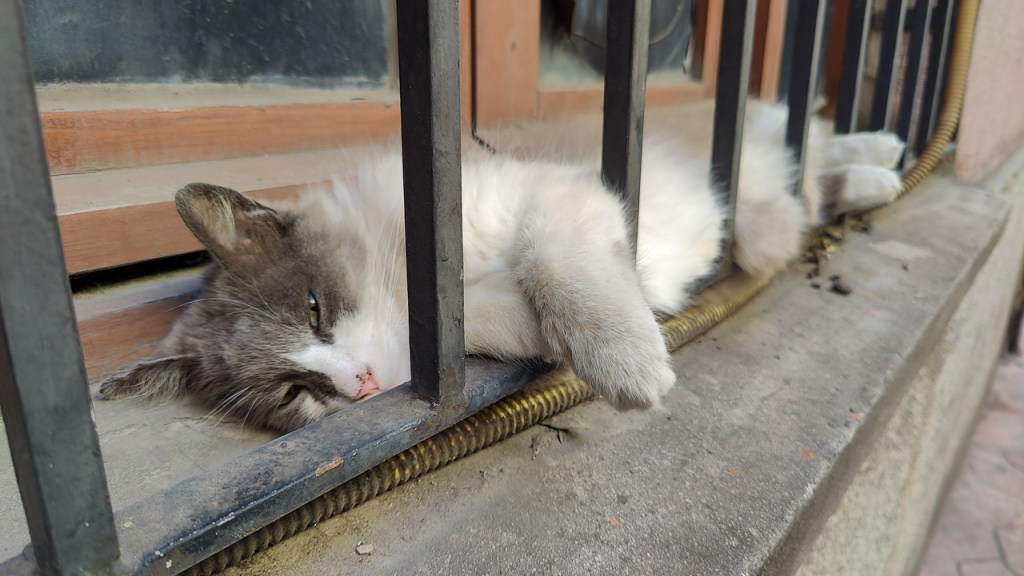 Полюбуемся ещё на котика — и отдыхать, на боковую. Ноги кричат, что им нужен отдых.