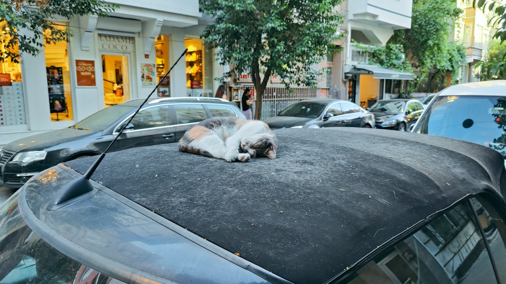 Истикляль — мекка чревоугодников и сладкоежек.Забудьте про диеты. Просто забудьте. Потом схуднёте лишние килограммы.Ну и торговля. Хотя… По сути весь Стамбул одно большое торжище.Так, вставим сонного котика. Давно не было.