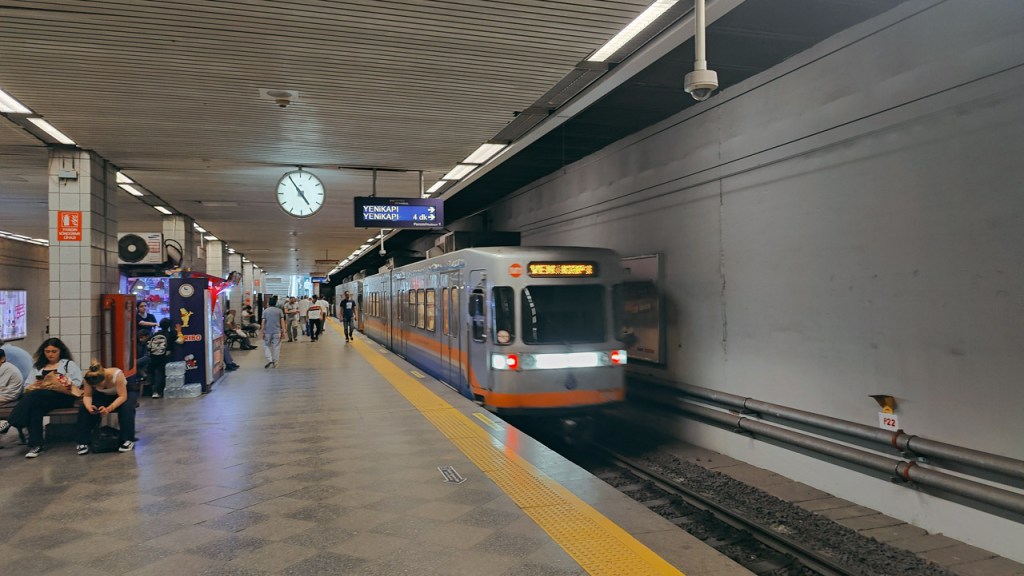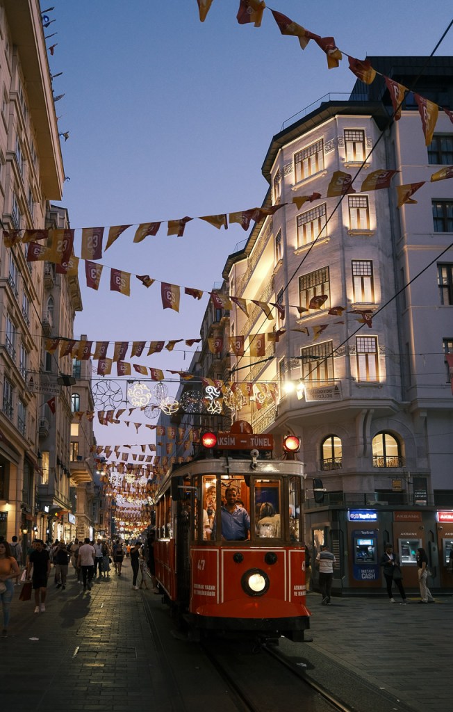 Кайф в том, что тебя никто не выгоняет, не цыкает предупреждениями. Как ни странно, в мечети можно просто отдохнуть в прохладе, почитать книжку в телефоне, просто поваляться на ковре — чем куча туристов и занималась. Тоже неплохой способ уйти от жары.Ну а мы решили догулять свой вечер на площади Таксим. Махнули на трамвае от Султанахмета до пристани Кабатаж, а оттуда фуникулёром, чтобы не убиваться на крутых подъёмах — наверх. Фуникулёры тут — часть общественного транспорта, оплачиваются аналогом карты «Тройка»Спасибо им. Стамбул стоит на весьма крутых склонах и они здорово выручают.