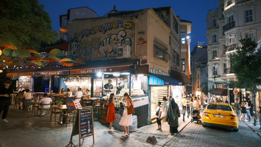 Истикляль вырождается в улицу Галип Деде, узкую и круто падающую вниз к заливу.