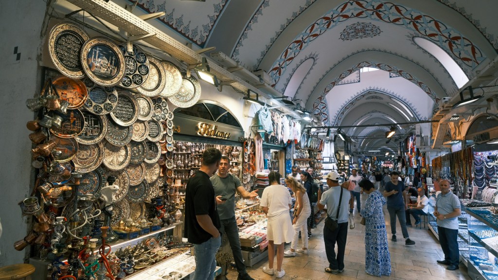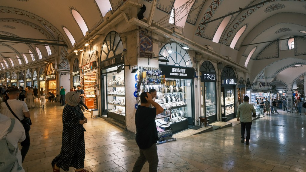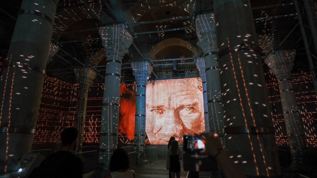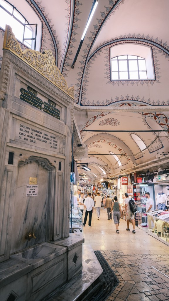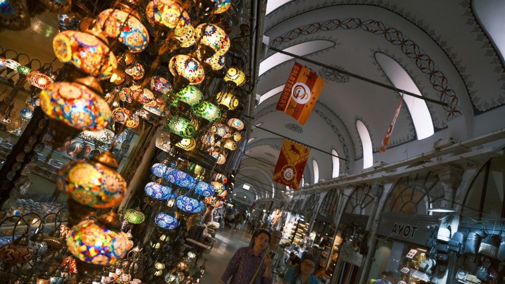 В зале разместили кучу проекторов, которые рисуют картинку на стенах и колоннах.Весьма впечатляет, но увы, фотографиями передать творящееся в 360 градусов вокруг тебя невозможно. Попробуйте оценить такВ шоу — два транслируемых сюжета. Один про общую историю Турции.Завершается тяжёлым неприятным взглядом Ататюрка.А второе — о византийской культуре. По одному входному билету можно посмотреть оба, просто не уходите по окончанию шоу и дождитесь начала другого.Удушающая жара немного спала. +28 ощущались приятной прохладой, и мы решили прогуляться до Гранд Базара пешком, а не ехать на трамвае (Основной очень удобный транспорт в центре города)Несмотря на то, что весь город по сути представляет из себя сплошное царство торговли, у него есть эпицентр. И это именно Гранд Базар.Чем тут, чёрт побери, только не торгуют.Например, биткоинами. Турция — криптофрендли страна.