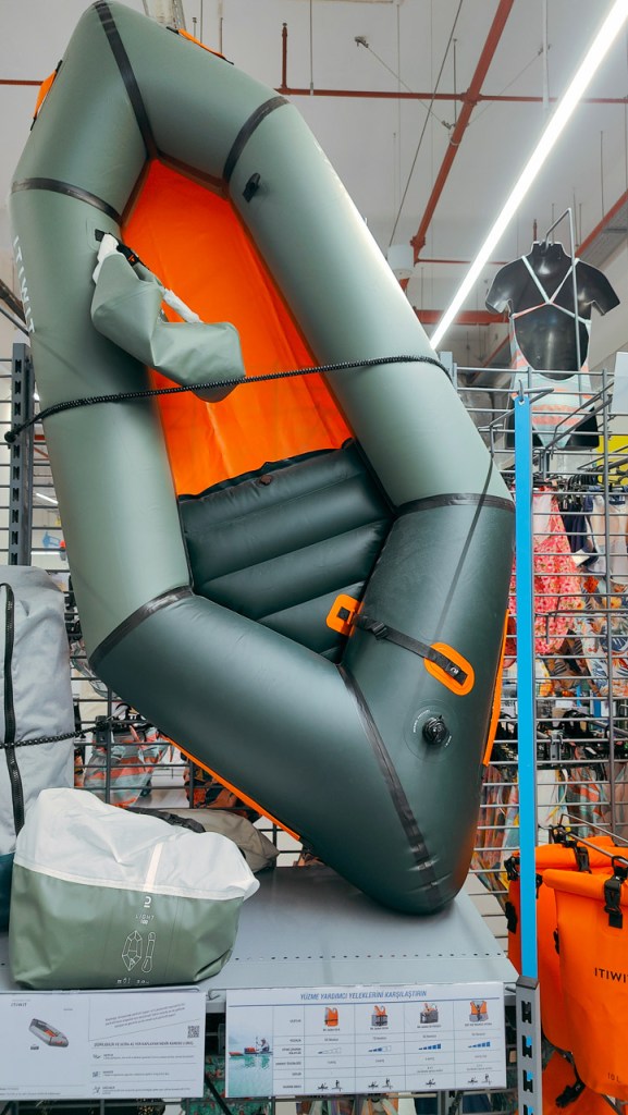 Пакрафт тут тоже необычно встретить… А в остальном ассортимент похож, разве что тёплых вещей сильно меньше, акцент сделан на защите от жары и солнца. Что неудивительно.