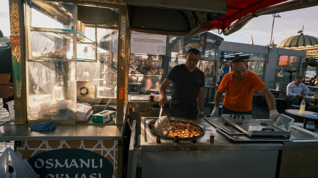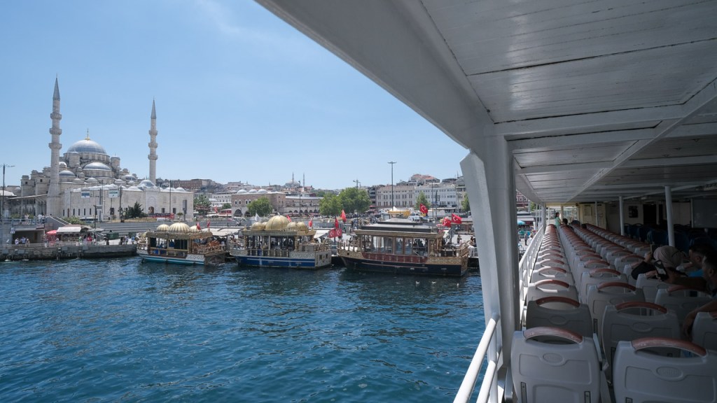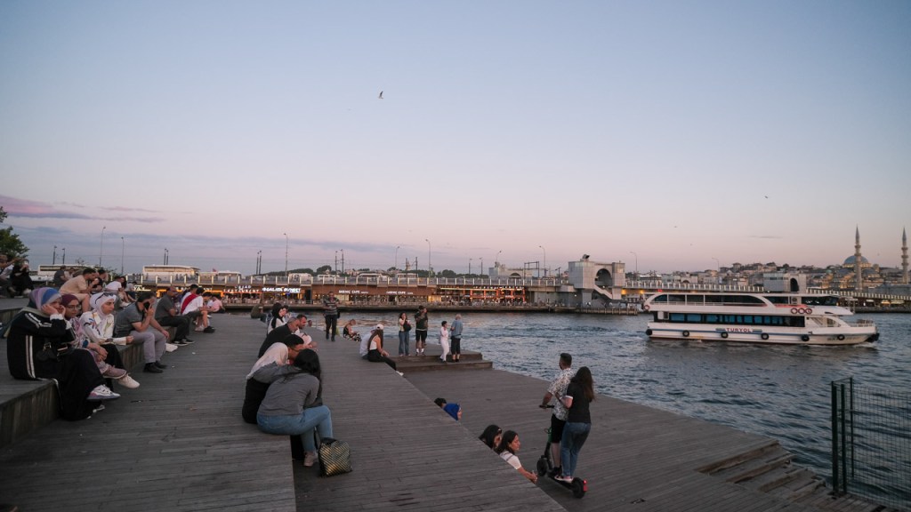 Лучшее место для любования — Галатский мост. Рекомендую.Местные предпочитают террасы у пристани Каракёй. Там можно посидеть на тёплых досках.Понаблюдать за непрерывной суетой кораблей, которые причаливают и отваливают буквально каждую минуту.Кафешки здесь менее популярны, чем в Эминемю.