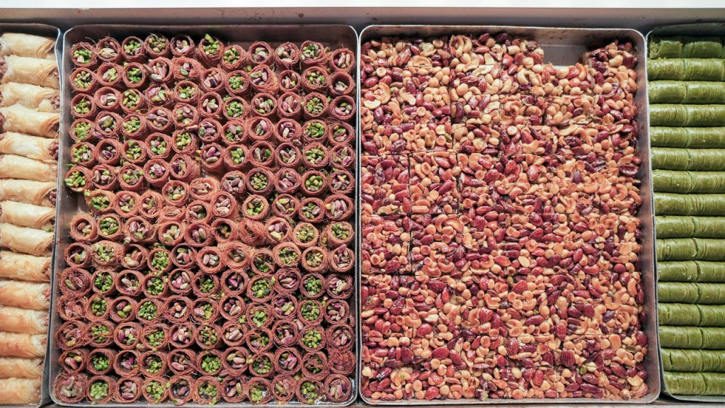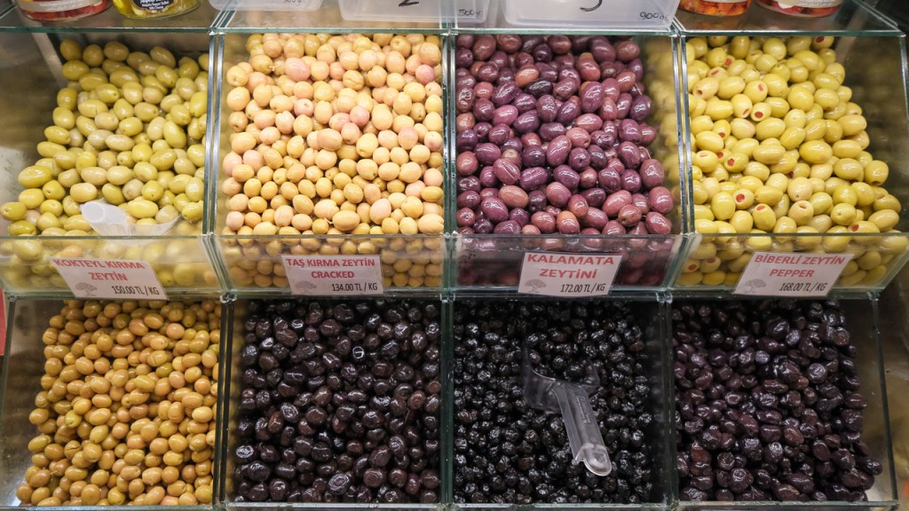 Конечно, есть более привычные глазу турецкие сладости.Политые тягучей сладкой патокой, ммммм.Да и на орехах здесь не экономят: дешманского сухого арахиса «из ашана» тут не встретишь.Вы можете заявить «да у нас такие же турецкие сладости продают» — нет. Поверьте. Не такие.Однако, сколько всего можно сушить.А вот специи, как ни странно, я бы здесь приобретать не рекомендовал. Нельзя их так хранить: выветриваются эфирные масла.Местные сыры, в том числе в шкуре.Мясные прелести: тем, у кого уже в горле от сладостей першит.Кстати, шикарнейшие оливки. Не хуже греческих.