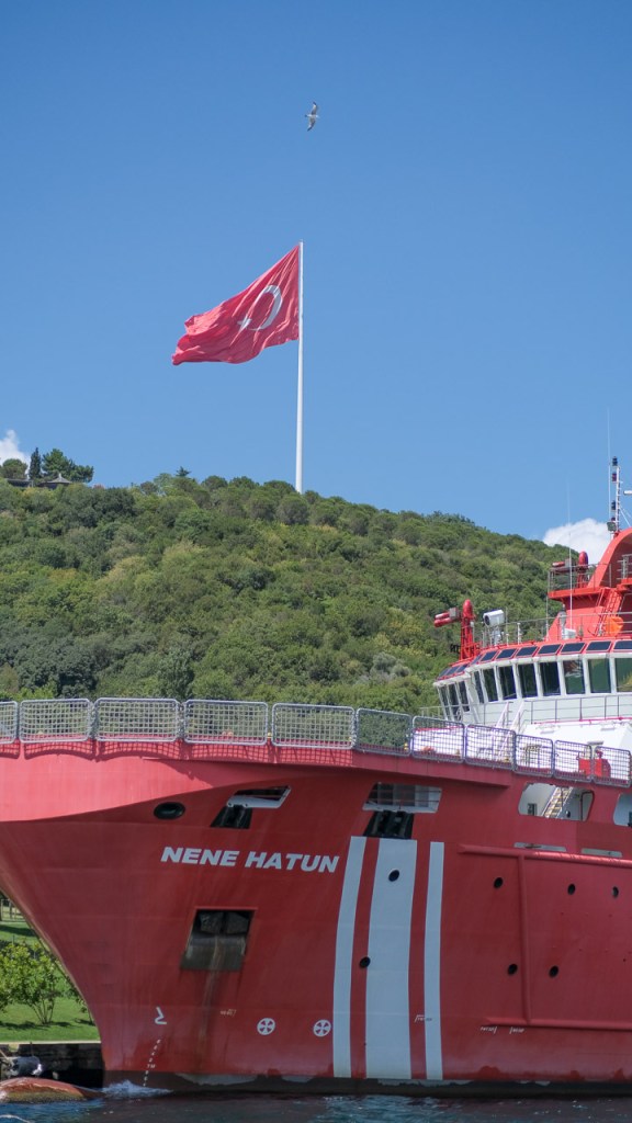 Спасательное судно, обслуживающее Босфор. Рядом с ним у стенки стоит яхта Universe, раза в два больше размерчиком, которая по слухам принадлежит нашему премьер-министру. Фотографировать не стал, ну его от греха.