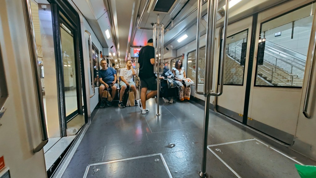 Втиснуться в него нереально. Ходит он редко и очень медленно. Но глаз радует.