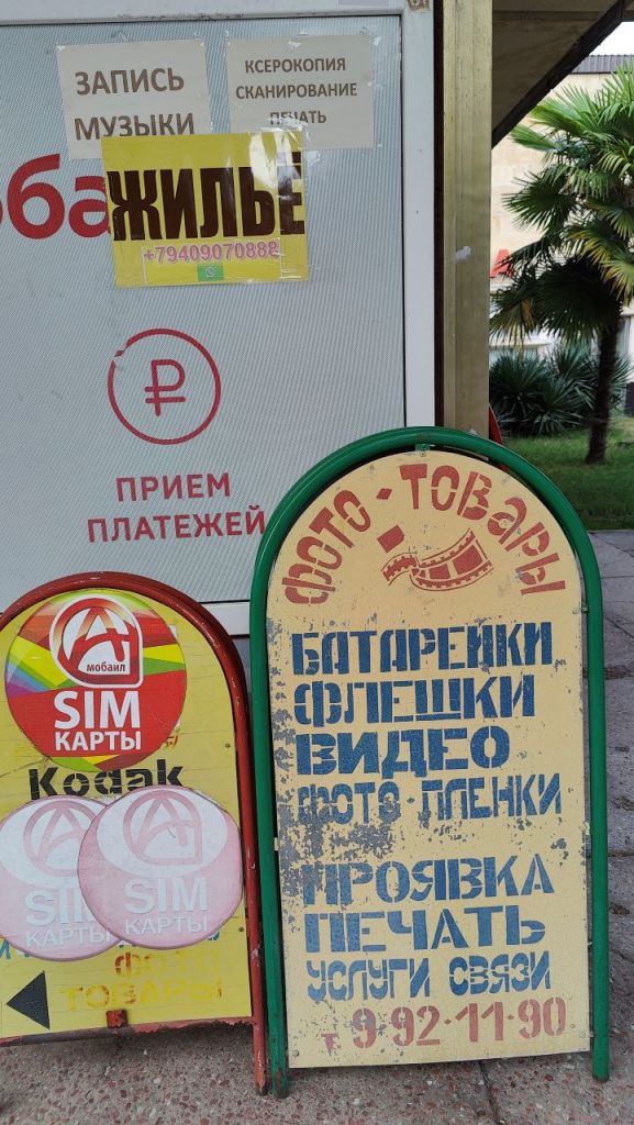 С мобильным интернетом дела не так просты. Это всё-таки другая страна, и роуминг здесь международный. Если вы сюда на пару дней — можно и своей обычной СИМкой пользоваться, обычно ОПСОСы предлагают пакеты вроде «600 рублей за сутки». Если побольше — рекомендую купить местную СИМку, гостевую можно купить даже без паспорта, но проработает она только 30 дней и отключится. Самый распространённый ОПСОС, чью симку можно купить в любом ларьке — а-мобайл. Есть бюджетный тариф «Лето+» за тысячу рублей, 10 гб+100 минут, есть более ёмкий «Краш 2.0» -30 гиг+100 мин за 1440 руб, есть сугубо интернетный «Mini КРАШ М» — это полный безлимит интернета, без голосовой связи , за 1250 рублей, вроде вкусное предложение, но! Учтите, что этот тариф работает только в диапазоне 4G. То есть где связь похуже, интернета у вас не будет совсем. Например, если соберётесь на озеро Ритца — 4G там нет. Однако и Гагры, и Пицунда сетью 4G покрыты полностью.
