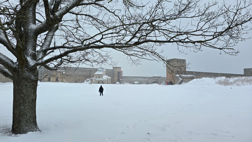 В остальном играть в Ивангороде легко и приятно, нам понравилось. Городок привычен к туристам, никто на тебя с изумлением не пялится. Улицы зимой чистят, тротуары широкие, есть на что поглядеть, если вынырнуть из экрана с игрой.