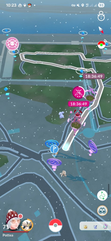 С покемоньей инфраструктурой тут всё нормально: в достатке и «розовых арен», и покестопы с конкурсами есть, и маршруты прорисованы. Если попробовать оценить общий масштаб, то первом районе я насчитал 62 покестопа и 12 арен, на Парусинке 57 стопов и 9 арен, а в «половинке», там где променад — 47 стопов и 8 арен (это примерный подсчёт, возможно если углубиться в частный сектор можно найти ещё).