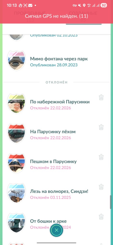 Отмечу, что рисование новых маршрутов здесь достаточно затруднено. У меня зарубили аж целых три маршрута под предлогом, что они проходят через какие-то «опасные зоны» — хотя я просто ходил по обычным, вполне проезжим улицам, и ни в какие дебри не стремился.